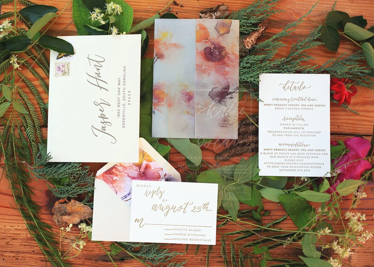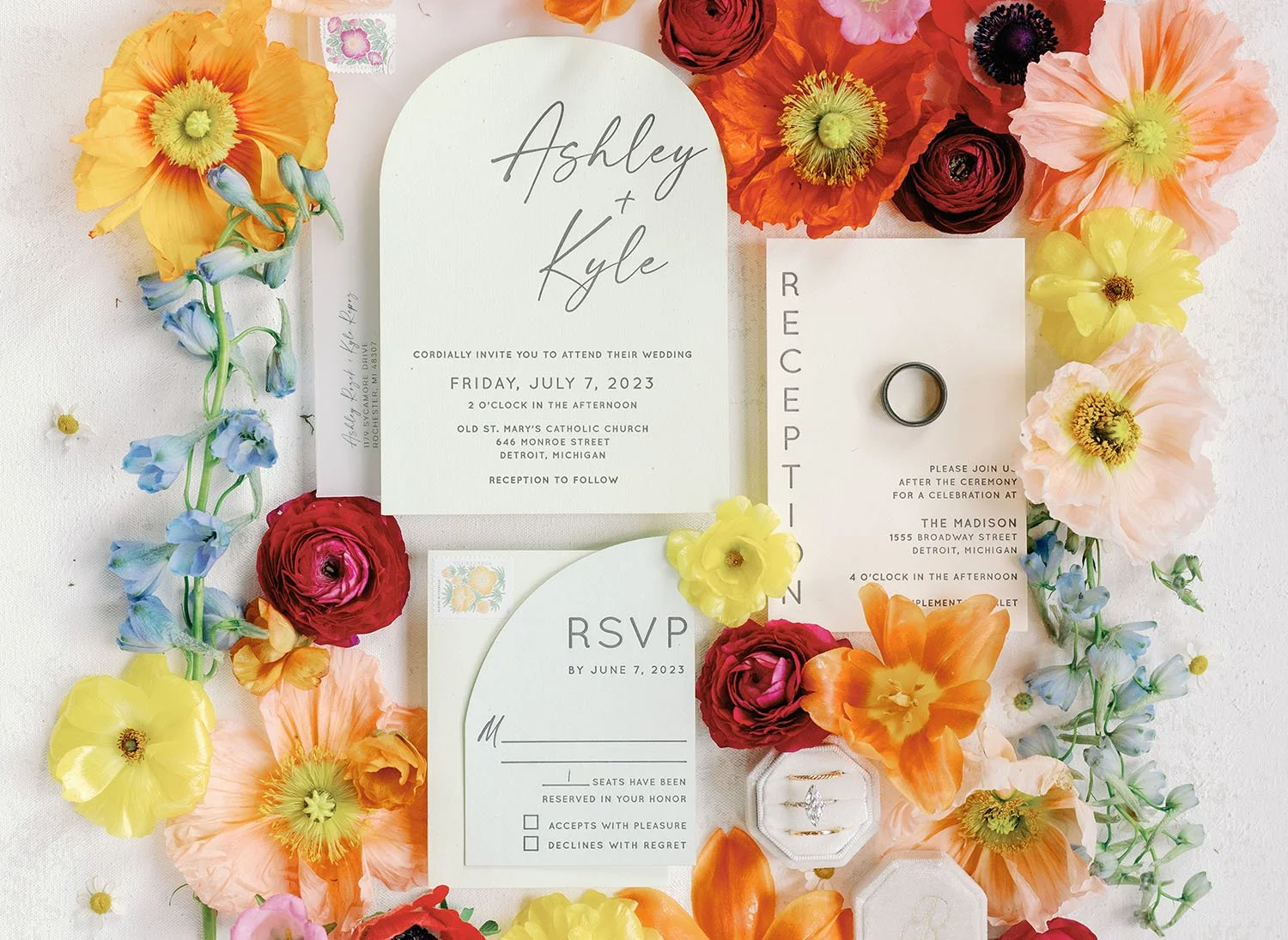 Are you a minimalist couple, or do you love bold and vibrant designs? Your personal style can be the foundation of your invitation design. For example: